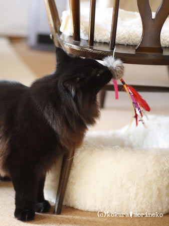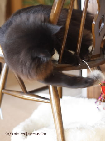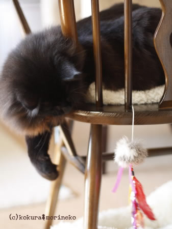 椅子に引っ掛けただけのじゃらしでもまだまだ充分に遊べます(^_^;)