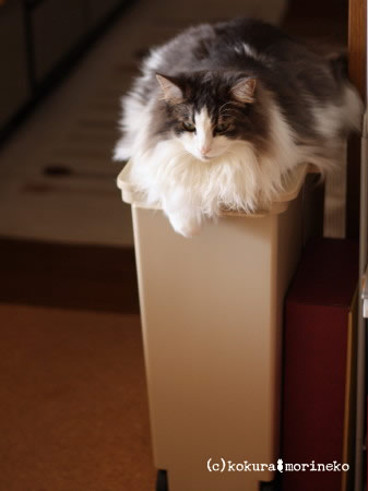 このゴミ箱、細長いので上でセシたんが寝ても大丈夫なサイズなんです