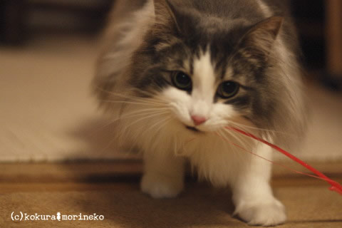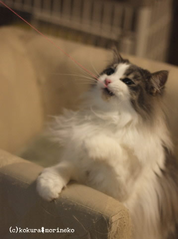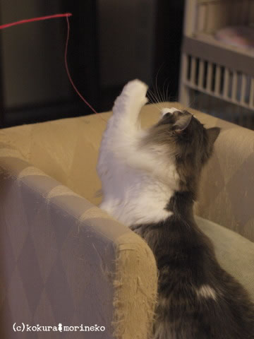 今日はネオに破壊されたじゃらしの糸で遊んでます